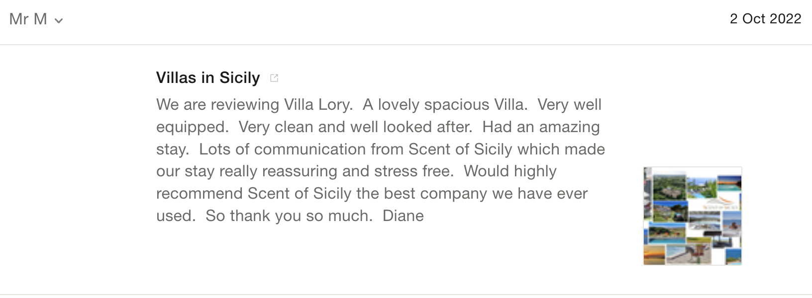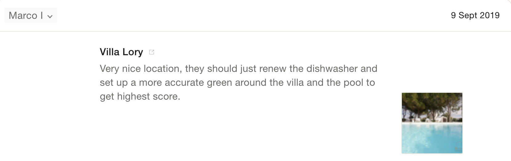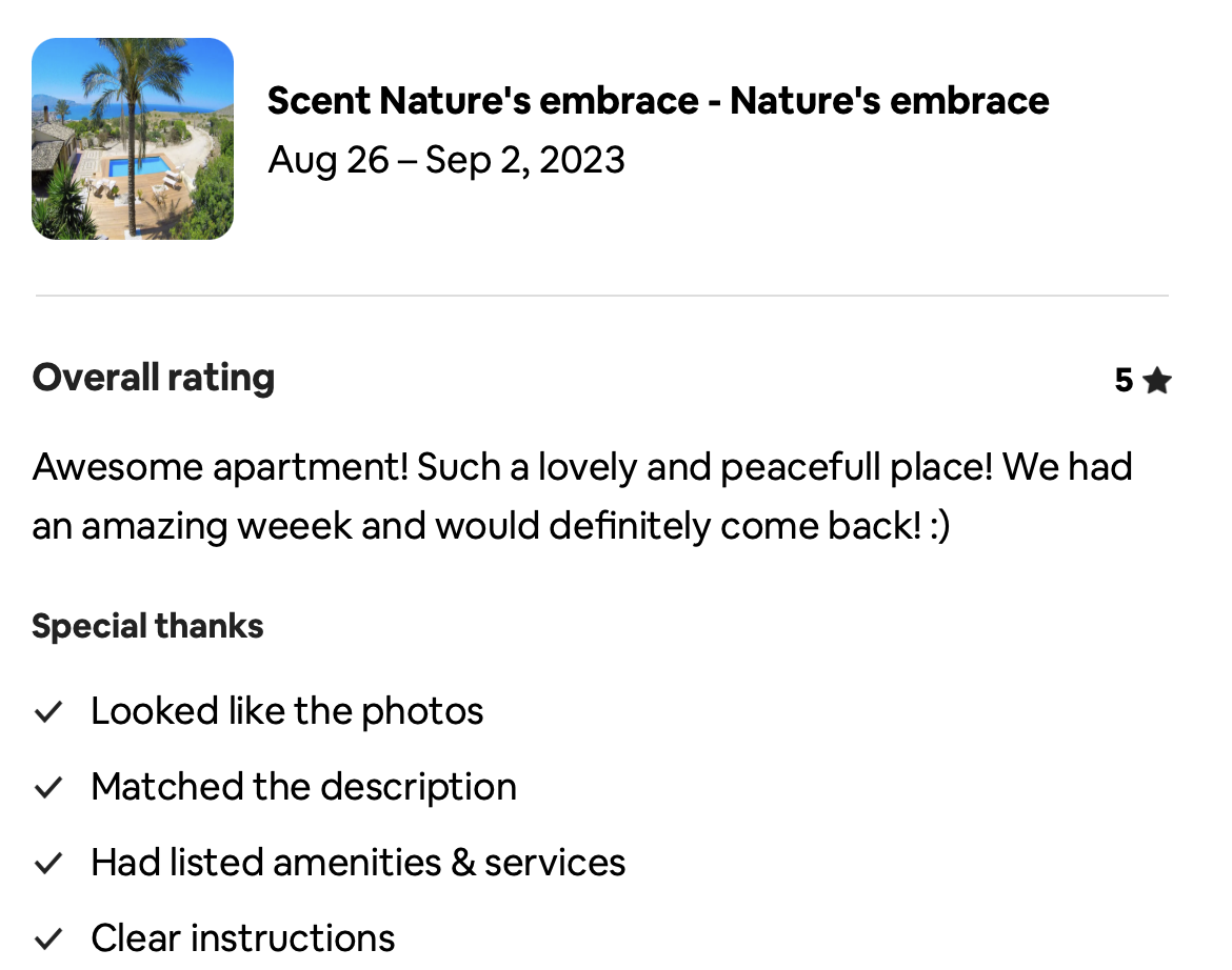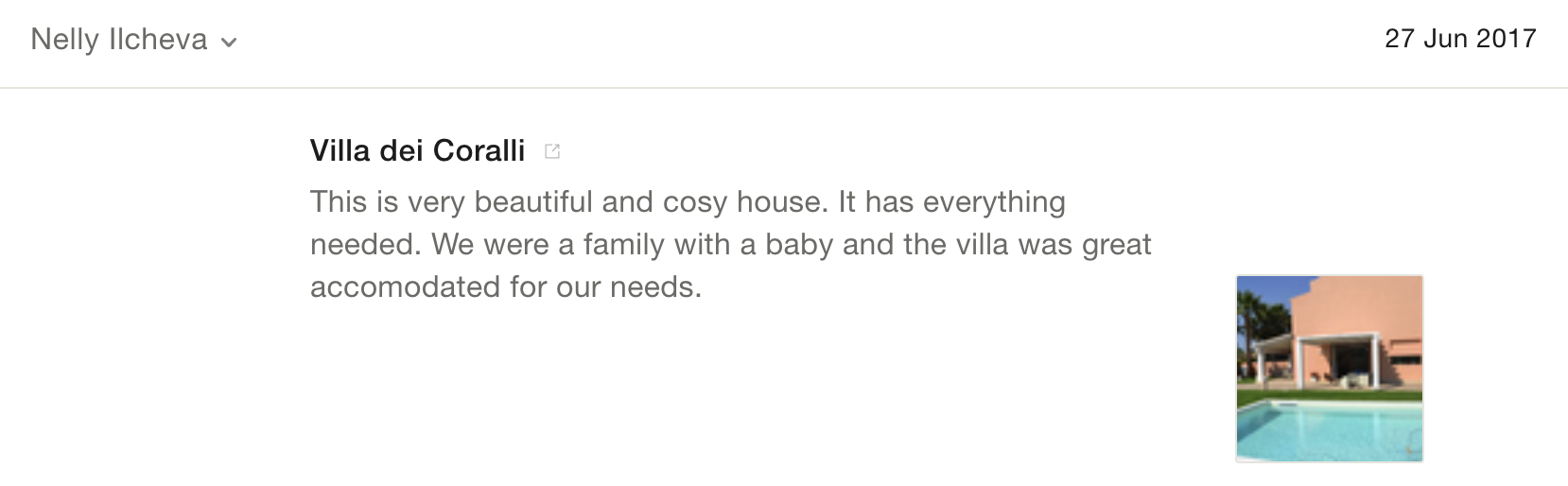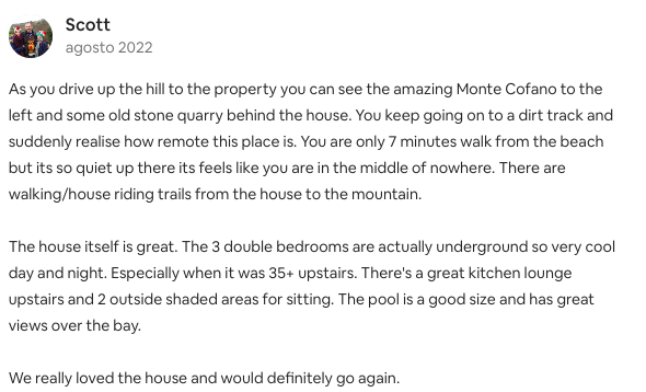Reviews on one of our villas