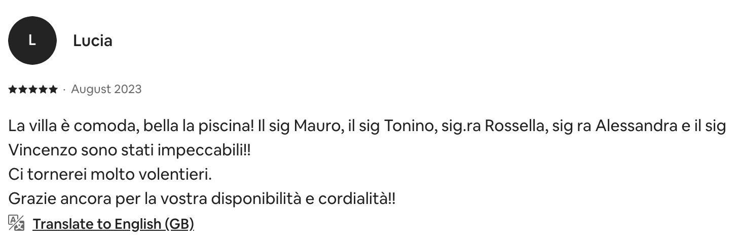 Villa Lory is a spacious, well-equipped, and spotless home that made our stay truly enjoyable. The support from Scent of Sicily was outstanding—constant communication made everything easy and stress-free. One of the best experiences we've had. Thank you!