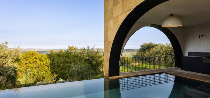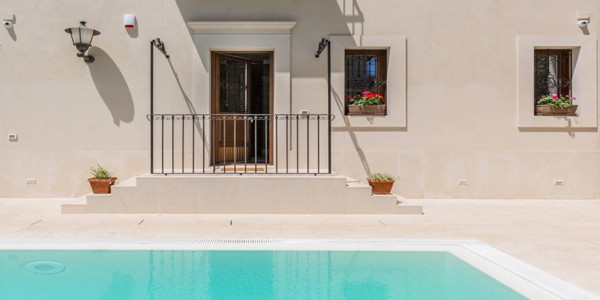 In Villa Gioi, from the terrace and refined pool, you can take in the stunning view of the leafy countryside of Baroque Sicily leading down to the blue sea.