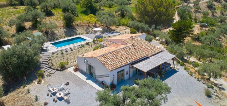 A comfortable villa with infinity pool overlooking the Northern coast of Sicily, immersed in the quiet atmosphere of Sicilian countryside.