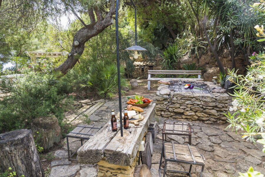 The outdoor spaces are cosy and inviting, with comfortable upholstered sofas that invite absolute relaxation and enjoyment of the landscape. You can spend convivial moments on the two beautiful covered terraces and prepare tasty barbecues on the stone grill, accompanied by the sea breeze and the scents of the lush reserve. The outdoor shower will offer a pleasant feeling of freshness to relax after a day in the sun.