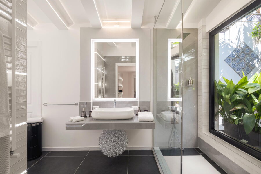 Then discover the centrepiece of relaxation and renewal: the outdoor experience shower: this unique facility invites you to experience a multi-sensory journey of rejuvenation. Feel the gentle cascade of water enveloping your skin, washing away tension and revitalising your spirit.