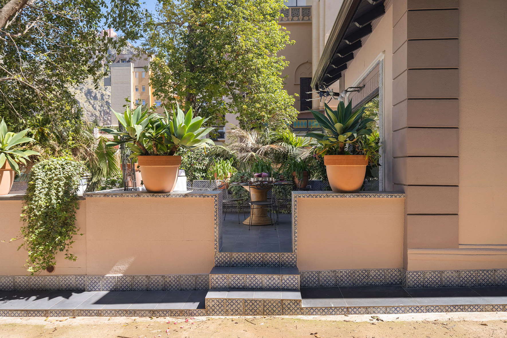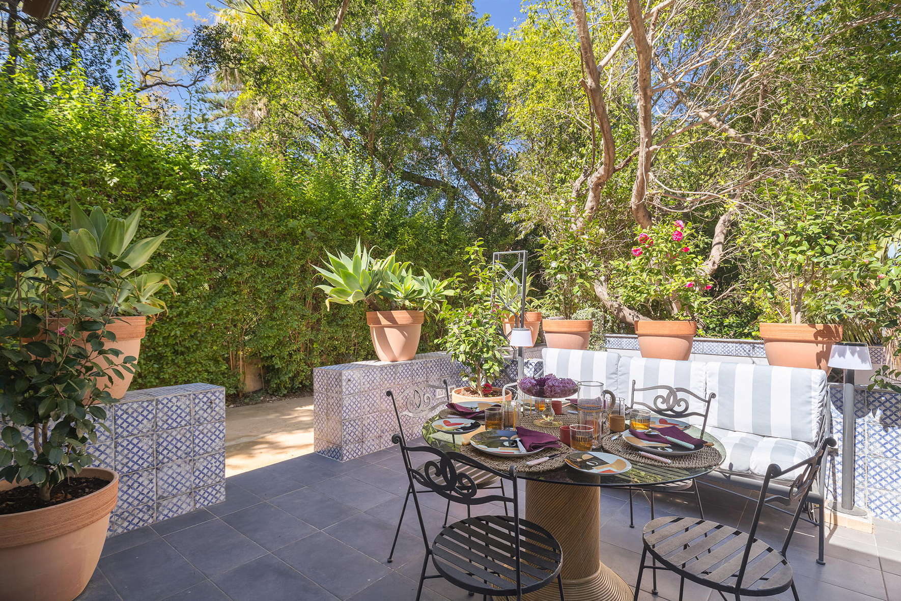 -Kitchenette with living area- French doors lead to the private terrace with table and sofas