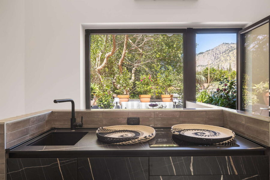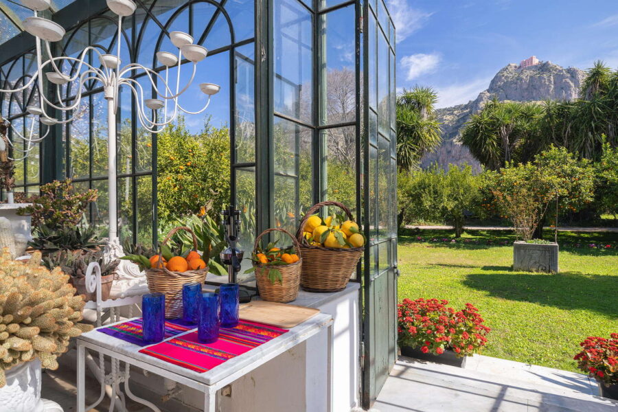 After a refreshing shower, relax and bask in the warm Sicilian sun on our luxurious loungers. Strategically positioned amidst the verdant garden landscape, these inviting loungers offer the perfect place to soak up the sun’s rays, lulled by the gentle rustle of leaves and the chorus of birds.While visiting the lovely garden, guests can linger inside the furnished greenhouse and enjoy a freshly squeezed orange juice from the garden or a coffee.
