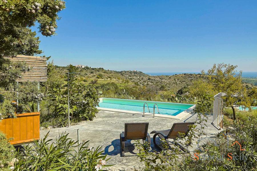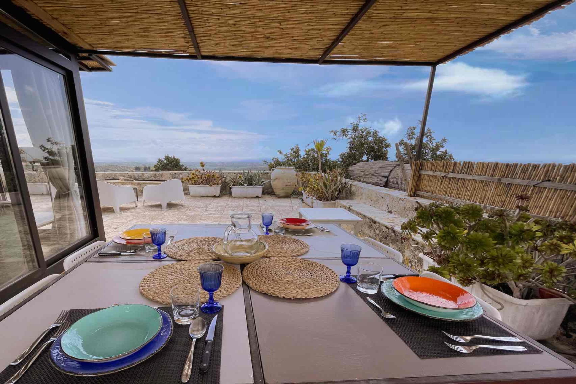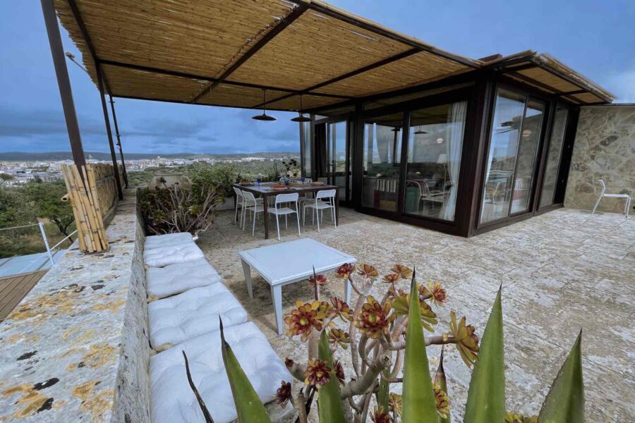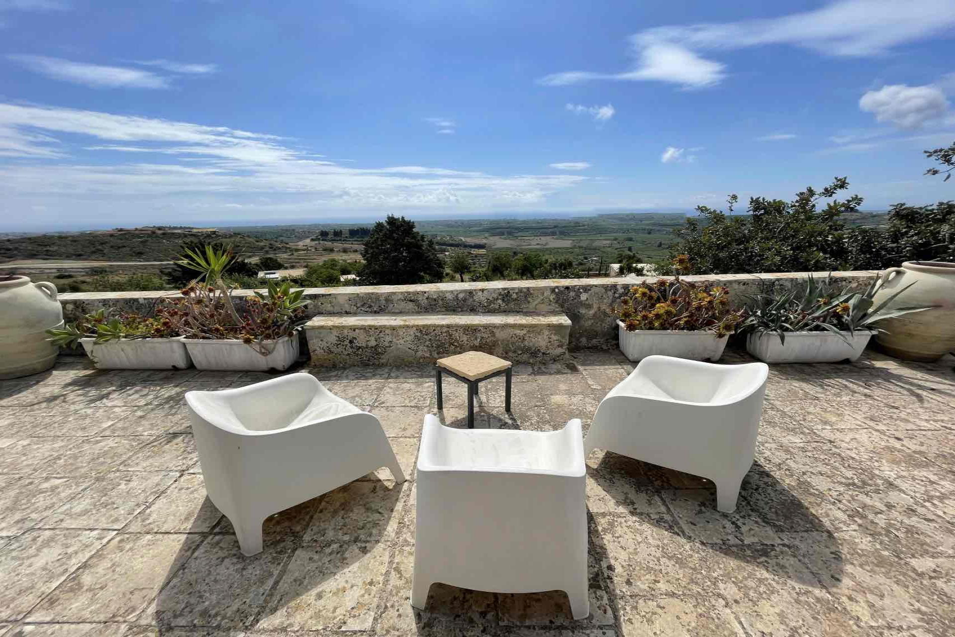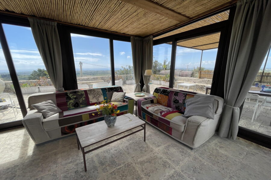 The villa’s highlight is its panoramic terrace and private swimming pool, both offering amazing views over the Sicilian landscape — a picture-perfect setting for sunbathing, dining al fresco, or simply enjoying golden sunsets with a glass of local wine. All around, the relaxing countryside creates a soothing backdrop, ideal for disconnecting and recharging.