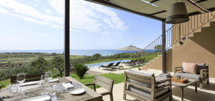 Villa Corallo, in a privileged position with a breathtaking panorama over the Sicilian sea, is located in the Luxury Verdura Resort.