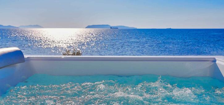 • An infinity pool and terrace for alfresco dining, overlooking the sea.