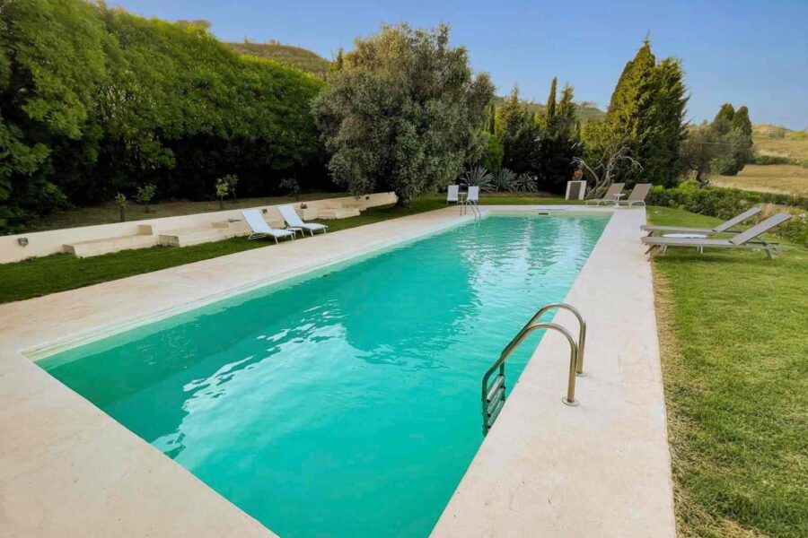Step outside and discover the villa’s beautiful grounds, where a private pool invites guests to unwind and embrace the tranquility of the Sicilian countryside. Surrounded by lush gardens and scenic views of the rolling hills of Enna, the pool offers a refreshing oasis for leisurely swims or simply relaxing in the warm sun. The outdoor spaces are designed for ultimate comfort, with shaded areas perfect for al fresco dining, enjoying a glass of local wine, or reading a good book while basking in the peaceful ambiance.