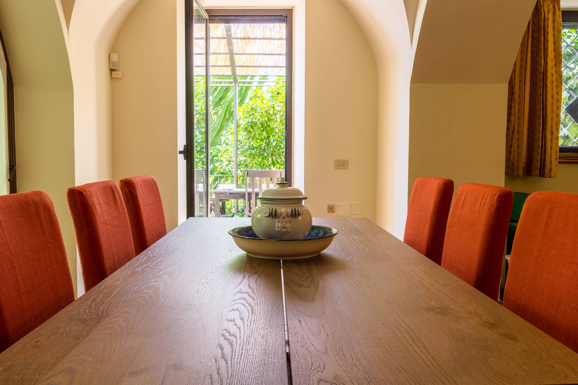 The lower floor totally overlooks the swimming pool and the porch. On this floor is the delightful equipped kitchen, dining room both indoors and outdoors for delicious al fresco dining.
