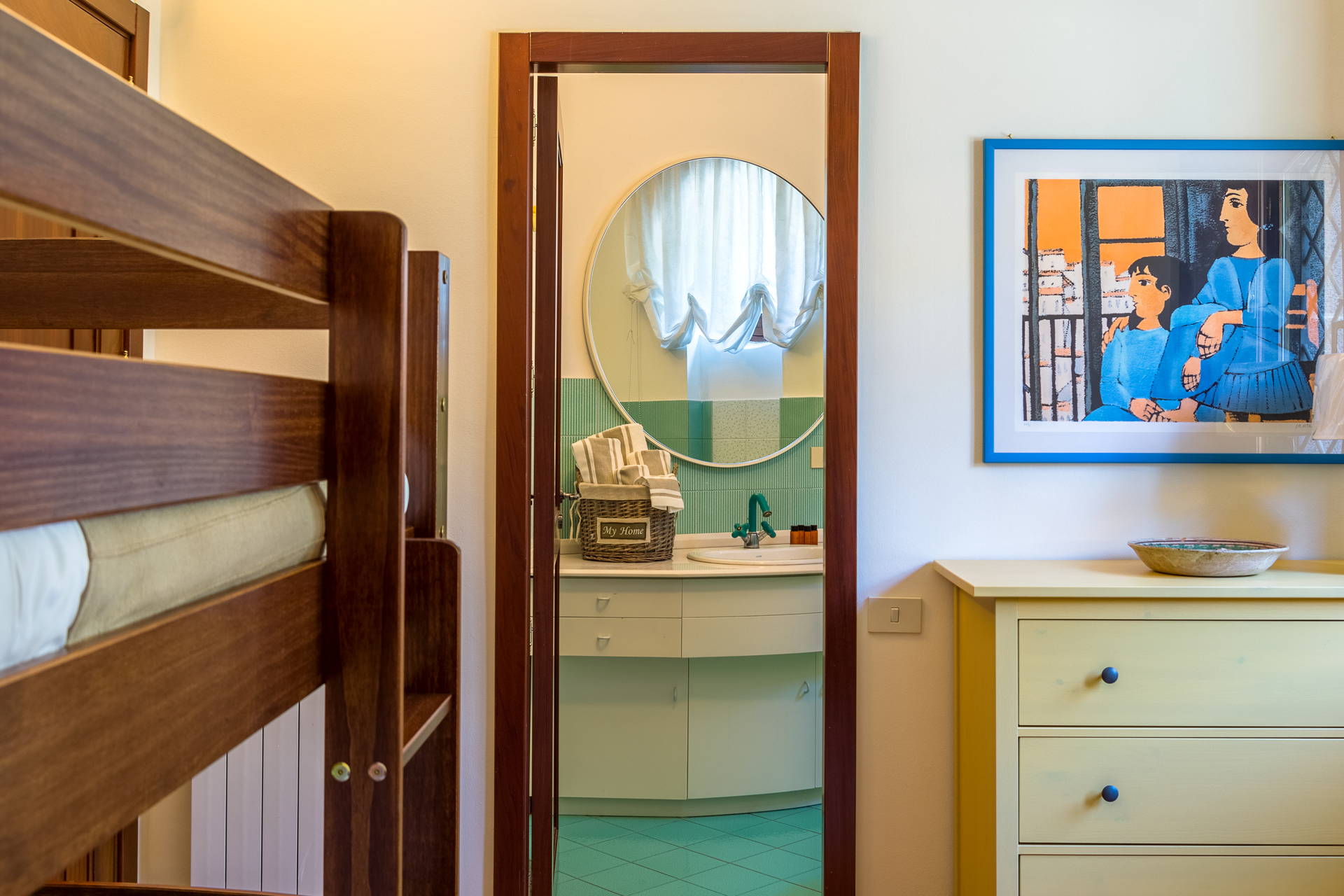 Villa Acireale overlooks different levels. Inside, the villa has the same fresh and light atmosphere as outside: from the entrance on the ground floor there is a large and cosy living room, perfect for relaxing hours, a bedroom with a double bed and a bedroom with a bunk bed, both with en-suite bathrooms to ensure maximum privacy for guests.