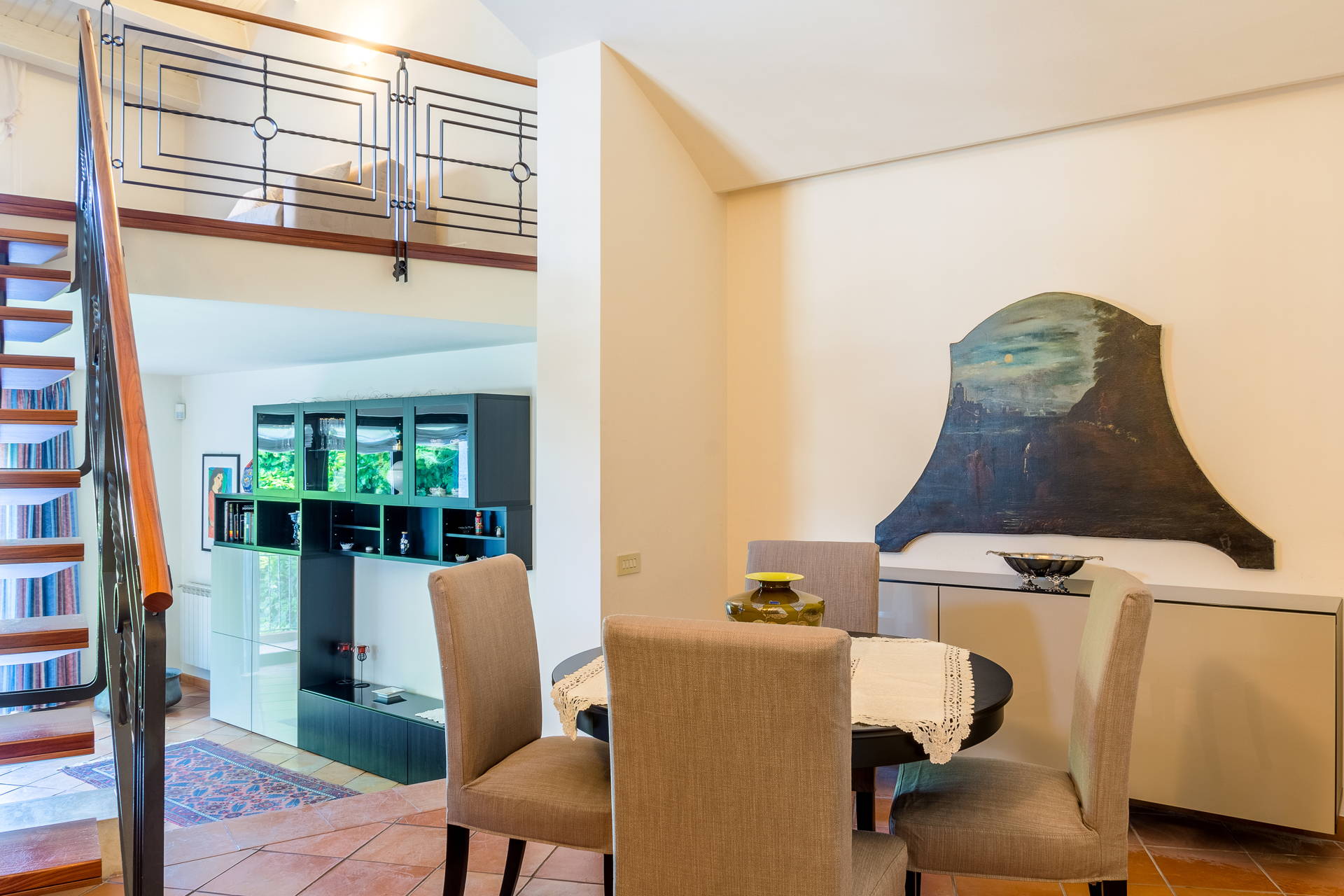 The atmosphere in the surrounding area is peaceful and pleasant. The splendid portico is really spacious, and is enriched with sun loungers and armchairs: the perfect setting for enjoying an al fresco dinner, intoxicated by the cool evening atmosphere. The swimming pool (5×9 metres) is located right in front of the portico, with shaded relaxation areas.