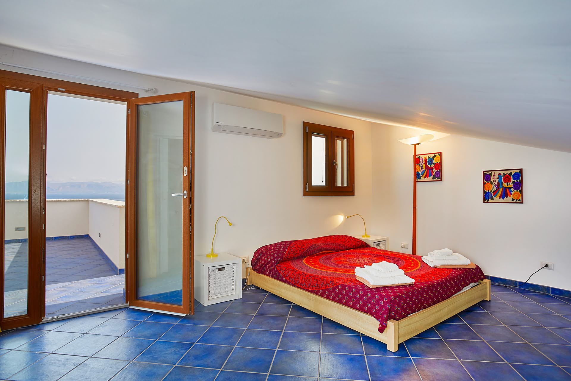 The veranda leads to the ground floor of villa Amanda, where there are 2 bedrooms, one double and one twin, the kitchen/living room with incredible views and 2 bathrooms.