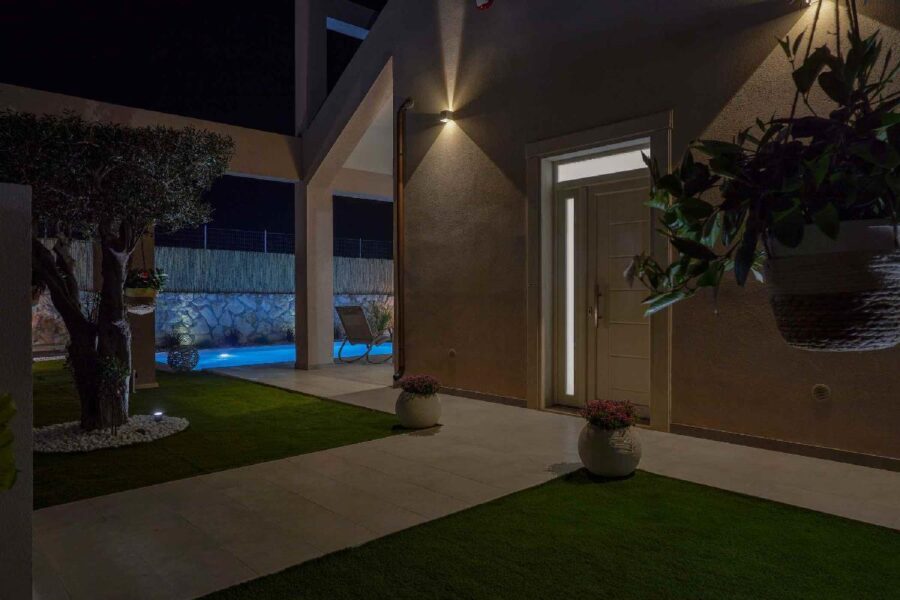 Designed for up to 6 guests, the villa features 3 elegant bedrooms and 2 modern bathrooms, offering the perfect balance of style, comfort, and relaxation. Large glass doors flood the interiors with light and create a seamless connection between the indoor spaces and the lush garden and pool area.