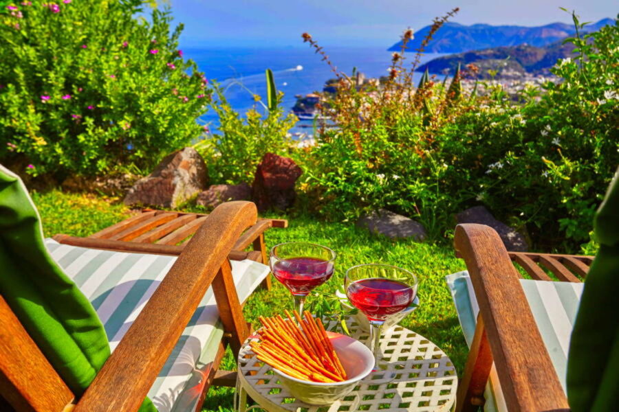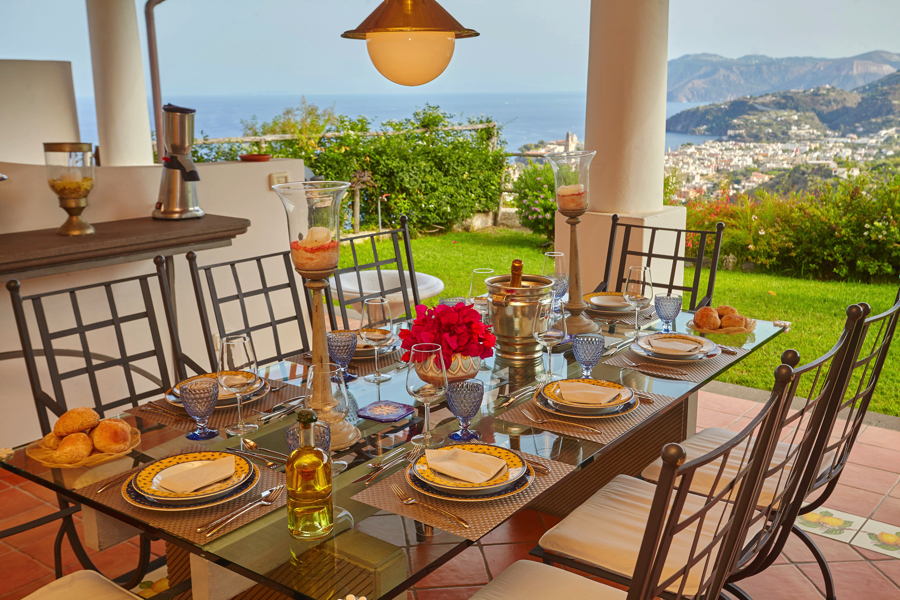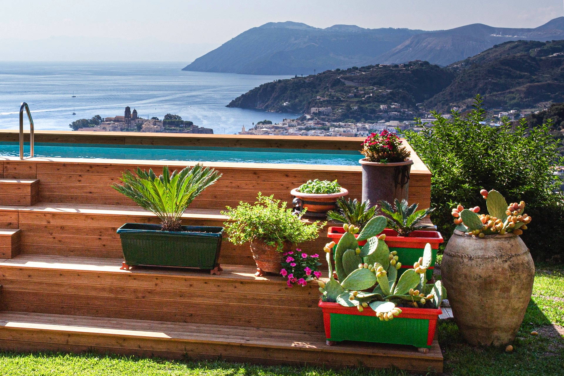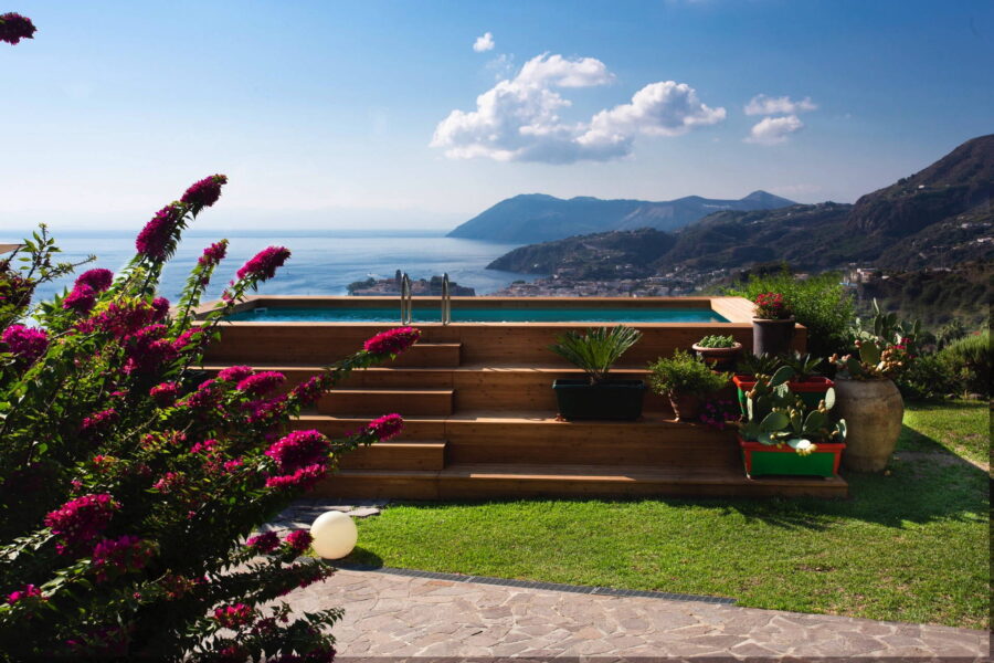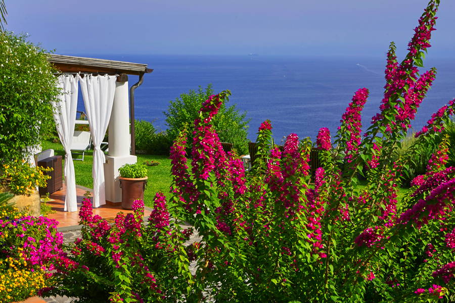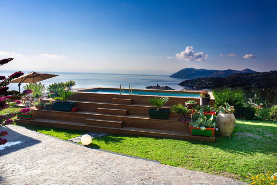 When you stay in Villa Blue Sea you have the impression to stay in paradise: Mediterranean sea all around you, garden and all beautiful colors of the nature sparkling on the sun: this is what this elegant villa surrounded by vegetation with breathtaking views over the blue expanse of the sea of Lipari, offers to you. a place to spend a holiday with all five senses.