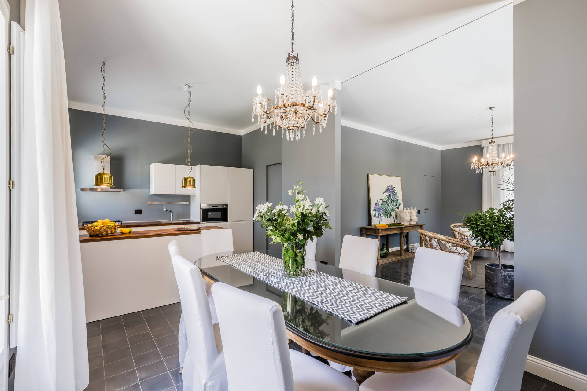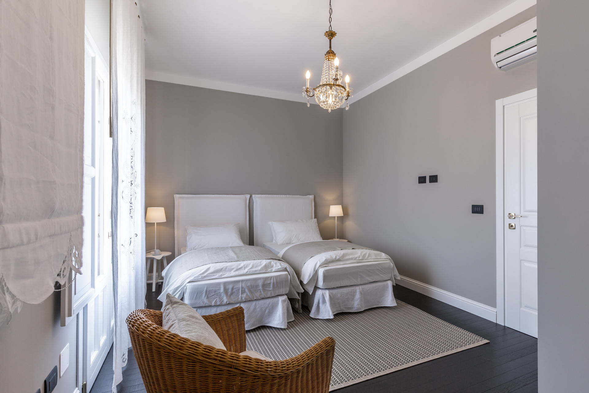 This exclusive villa has two floors and can accommodate up to 8 people. The interior exudes the atmosphere of an elegant manor house, with soft, relaxing, indulgent pastel shades and a harmonious blend of modern and antique furniture, from mirrors and light fittings to fabrics and ceramics.