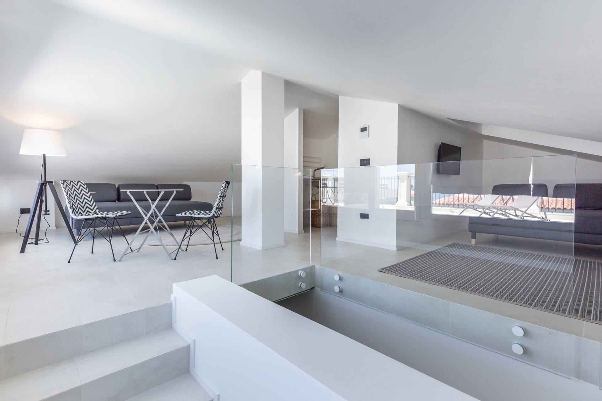 The ground floor has an airy open-plan living space with a magnificent dining area and a kitchen equipped with everything you could possibly need. There are also two bedrooms on this floor, a double and a twin (can be converted to a double), with a shared bathroom with shower. On the first floor, there is a second elegant living room with kitchen corner, two bedrooms (a double and a twin) and a bathroom with shower. The icing on the cake is the delightful loft space and bathroom. Step onto the amazing roof terrace and you will almost feel as if you can reach out and touch the sea with your fingertips!