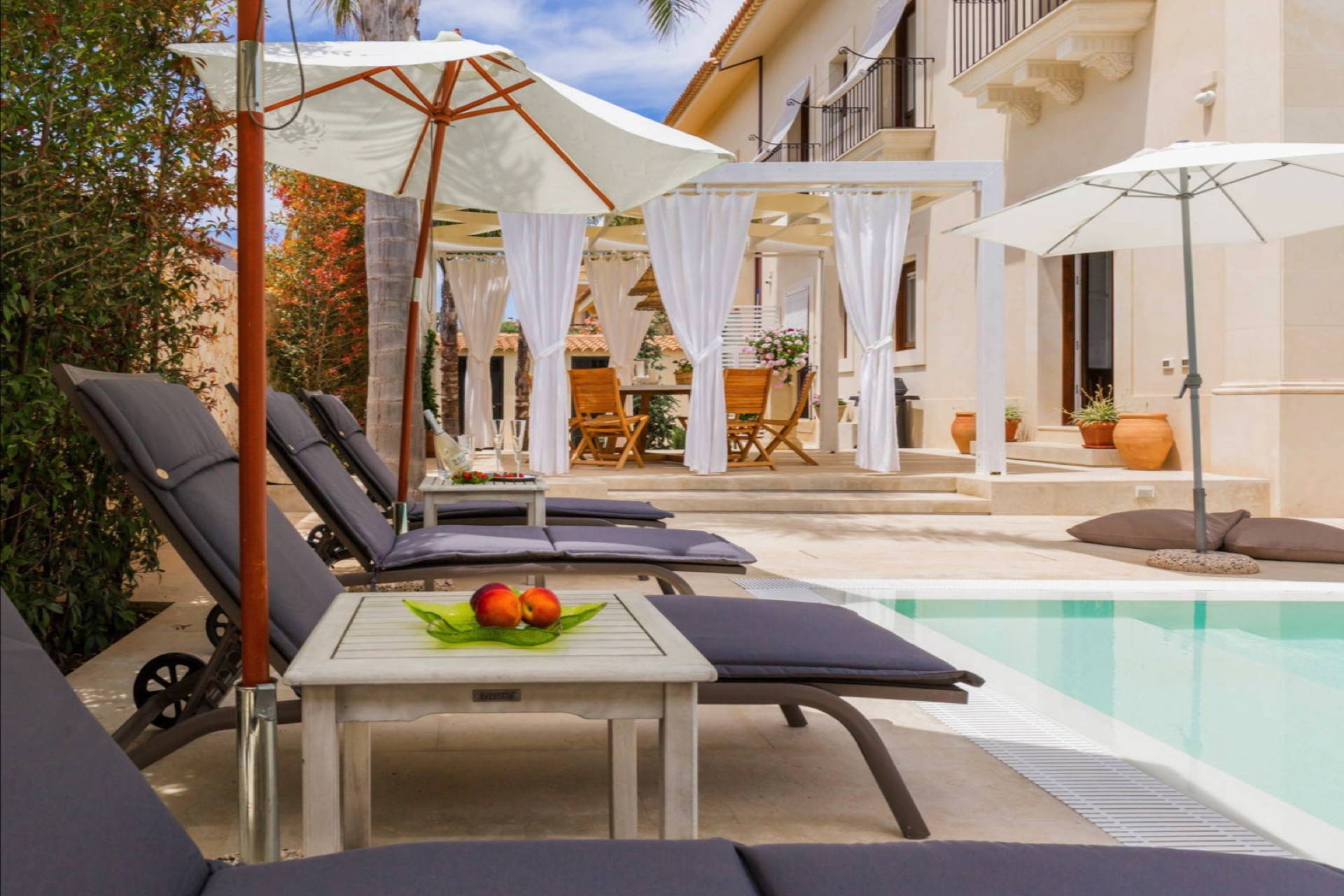 Your first glimpse as you step through the gates of Villa Classy will be the sight of the elegant façade. Enter a courtyard filled with olive trees, plants and brightly coloured flowers. The large sunbathing terraces around the salt-water pool are decked with sun beds and parasols and, alongside the terrace, there is another furnished veranda: the ideal spot for some chillout time or relaxing moments in company.