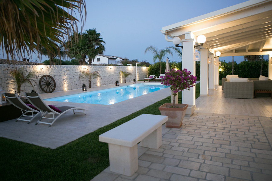 Just a short distance from the stunning beach of Santa Maria del Focallo, Villa Etro is an attractive villa, built to a high specification, and offering spacious and very comfortable accommodation all on one level. Elegant in design, it has been tastefully furnished in soft tones of white, cream and grey and is well equipped throughout.