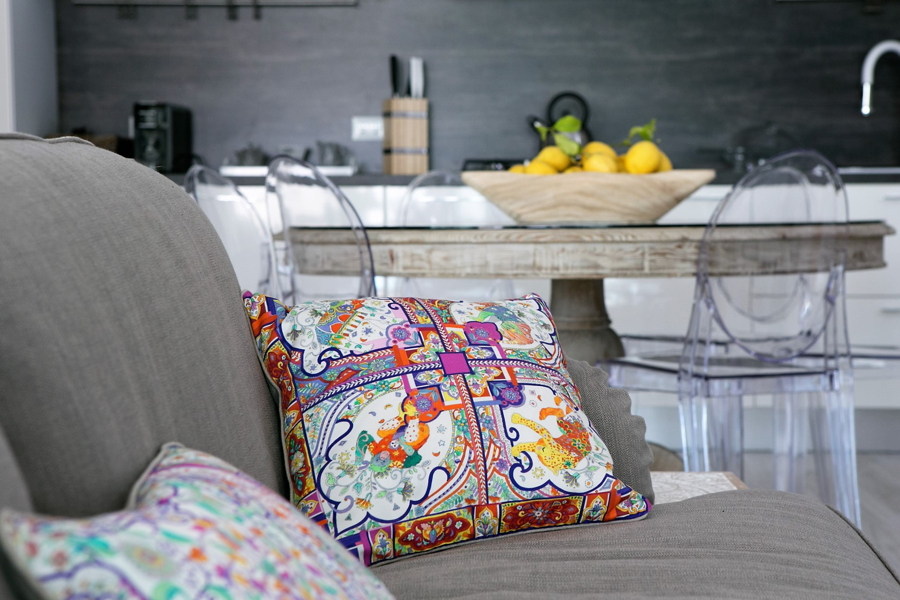 - Stylish forniture with soft tones of white, cream and grey