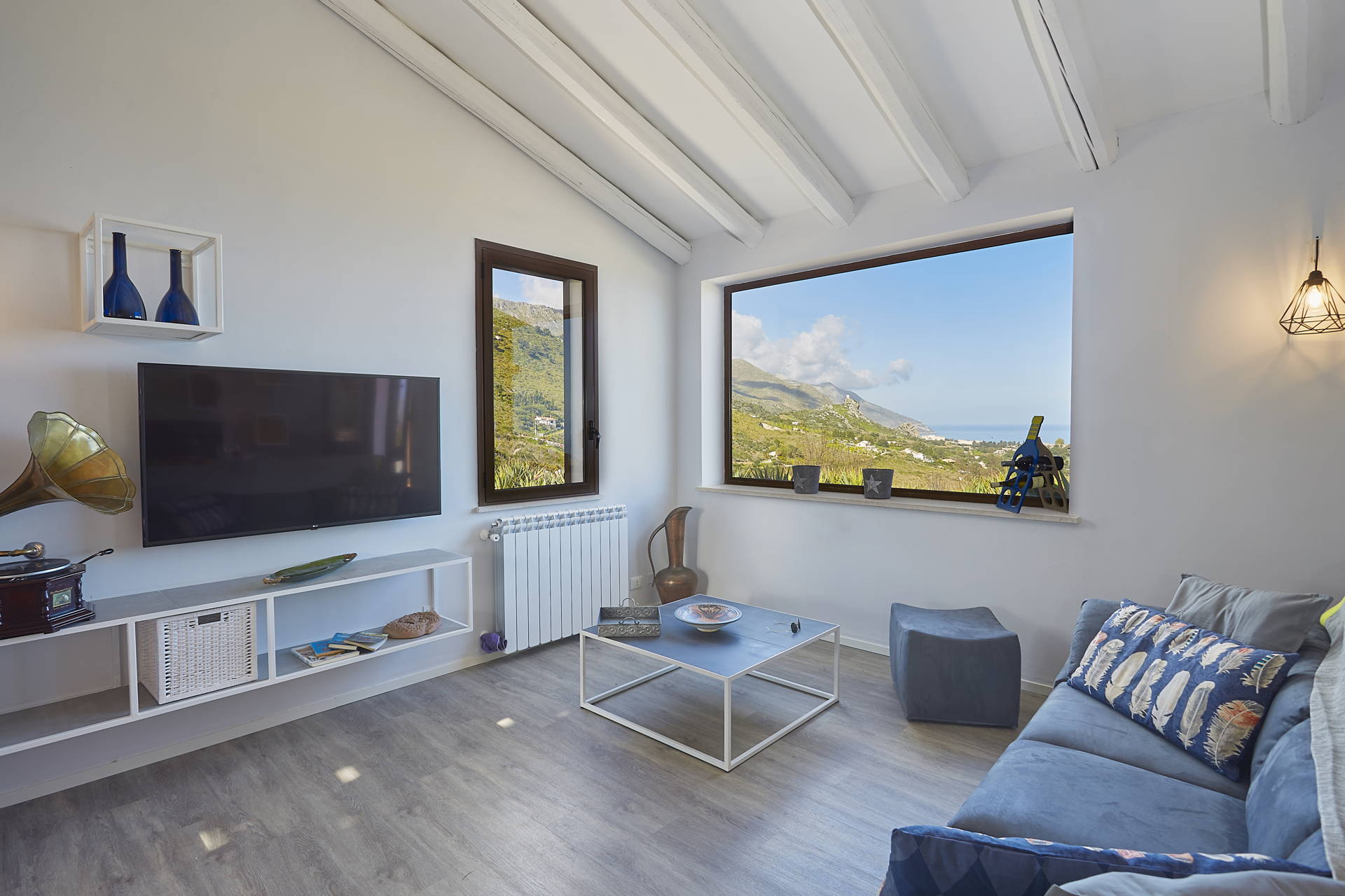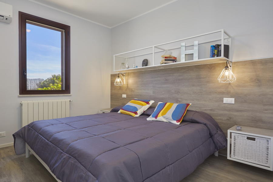 The villa accommodates 4 people in total comfort and is spread over a single floor with minimal, functional and comfortable furnishings. A living room with a view and a well-equipped kitchen make the room very bright, ideal places for convivial moments and evening relaxation. Two double bedrooms – one en-suite – and another bathroom with shower complete the accommodation.