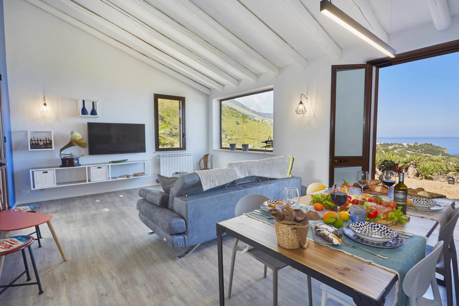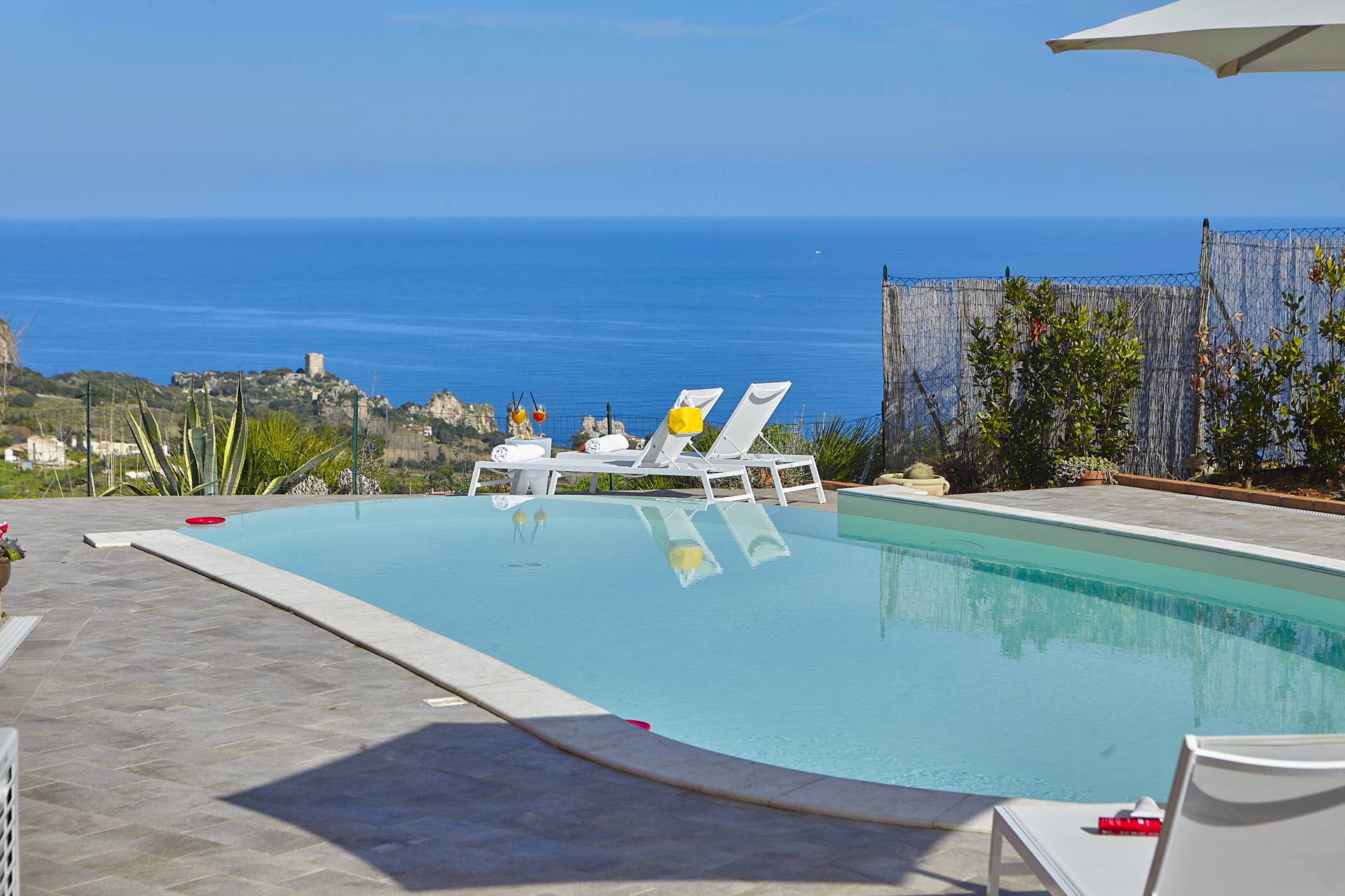 Between a dip, a swim in the pool and sunbathing on the relaxing sun loungers, you can prepare delicious meals in the outdoor brick kitchen, or decide whether the barbecue will be meat or fish. An ideal location, a short distance from the fishing village of Scopello and essential services. The sea is simply enchanting; don’t miss the Faraglioni rocks and a long swim at Guidaloca, the famous white beach in the Gulf of Castellammare.
