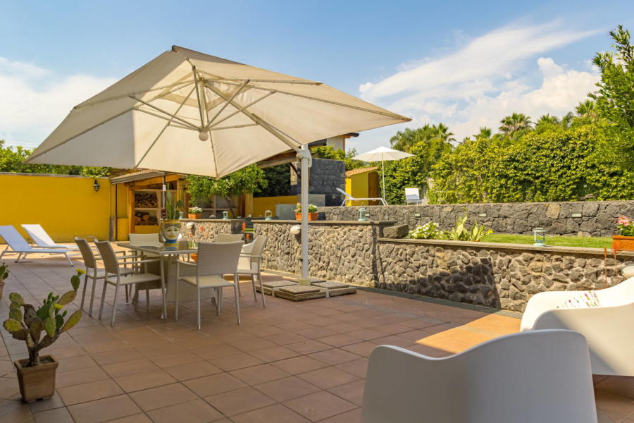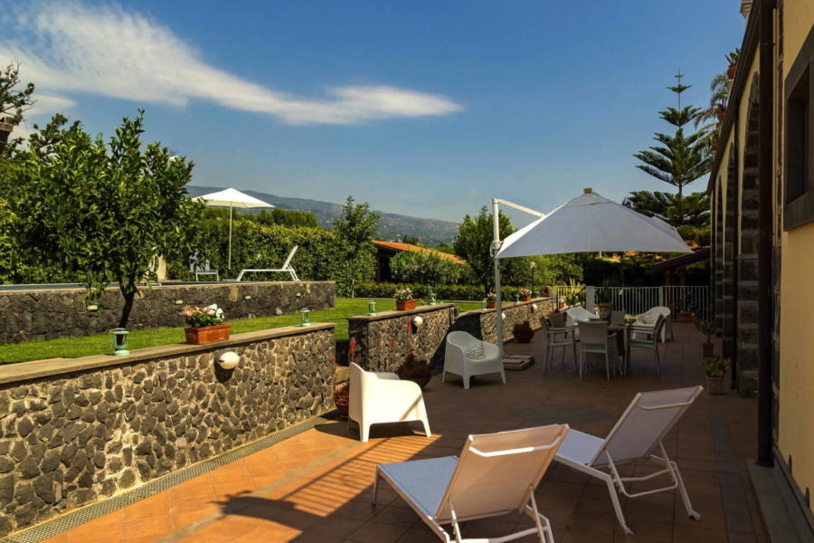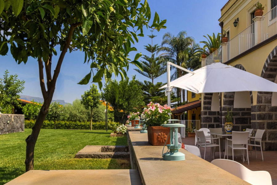 Peace and enchanting views, sunshine and Mediterranean scents, comfort and relaxation on the slopes of majestic Etna: at Villa Giarre you will feel enveloped by the typical warm Sicilian welcome, with all its generosity of scents, colours and emotions. The surroundings are all worth exploring: just a few kilometres separate you from the beautiful Taormina and the baroque treasures of Catania, a Unesco heritage site. The Ionian coast is varied and fascinating, the crystal-clear waters of the sea meet now fine white sands now imposing stacks… an unforgettable holiday awaits you!