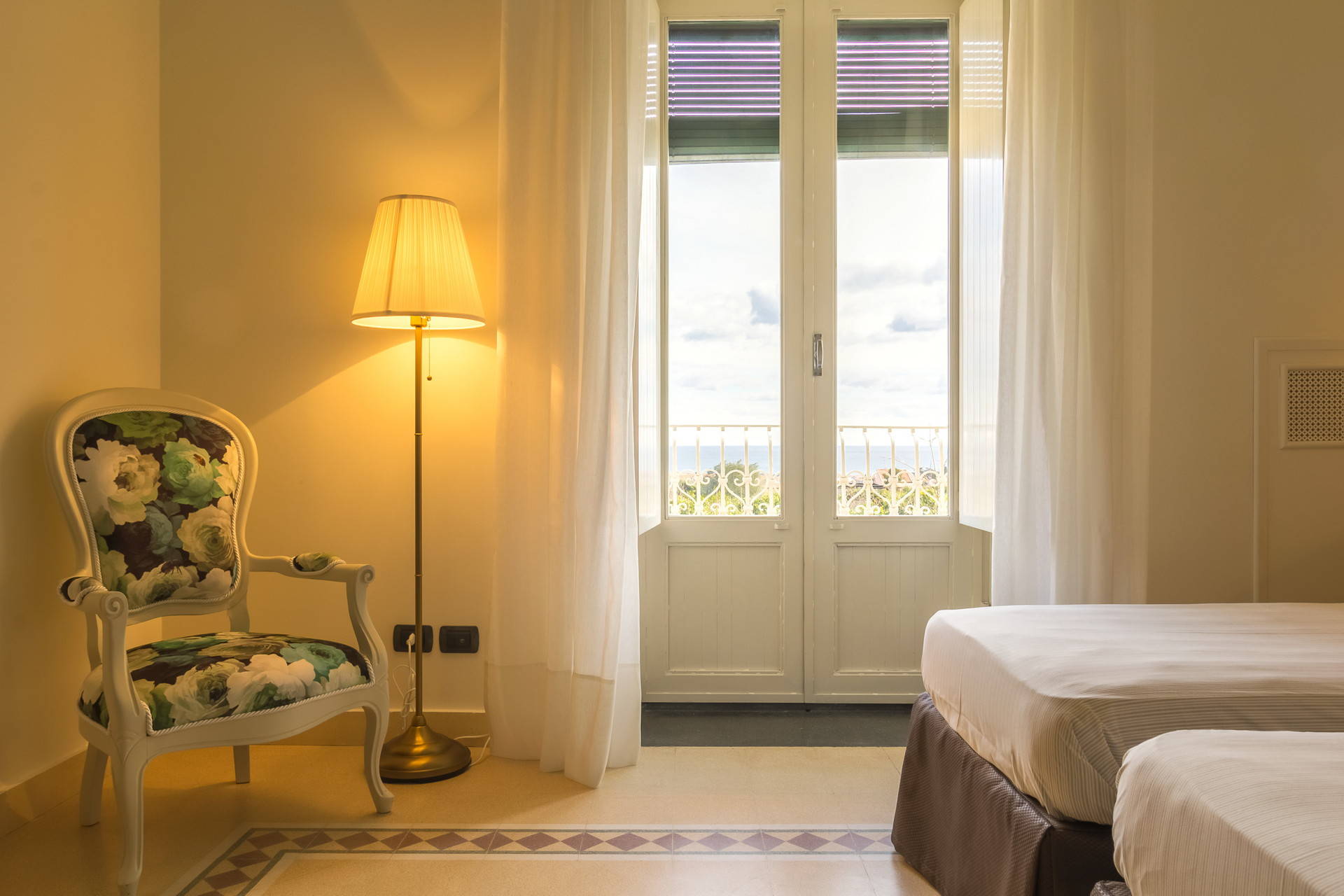 On the upper floor are the three bedrooms, all of which open onto a splendid balcony: spacious, refined and comfortable. One double room delights you with its magnificent view of Mount Etna; the second room, with a king-size double bed, and the third, a twin convertible into a double, give you an enchanting view of the sea and the citrus garden. The three rooms are served by a large bathroom with bathtub.