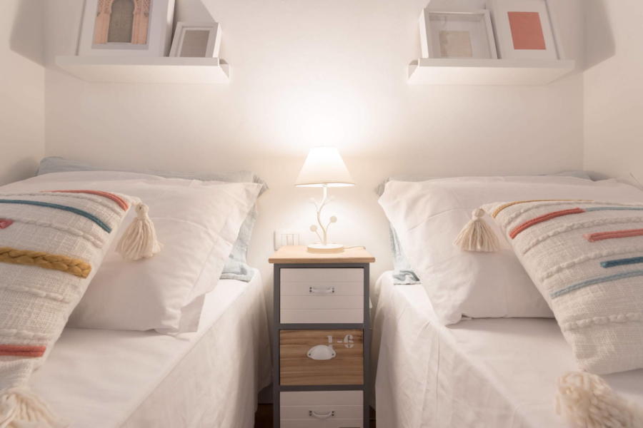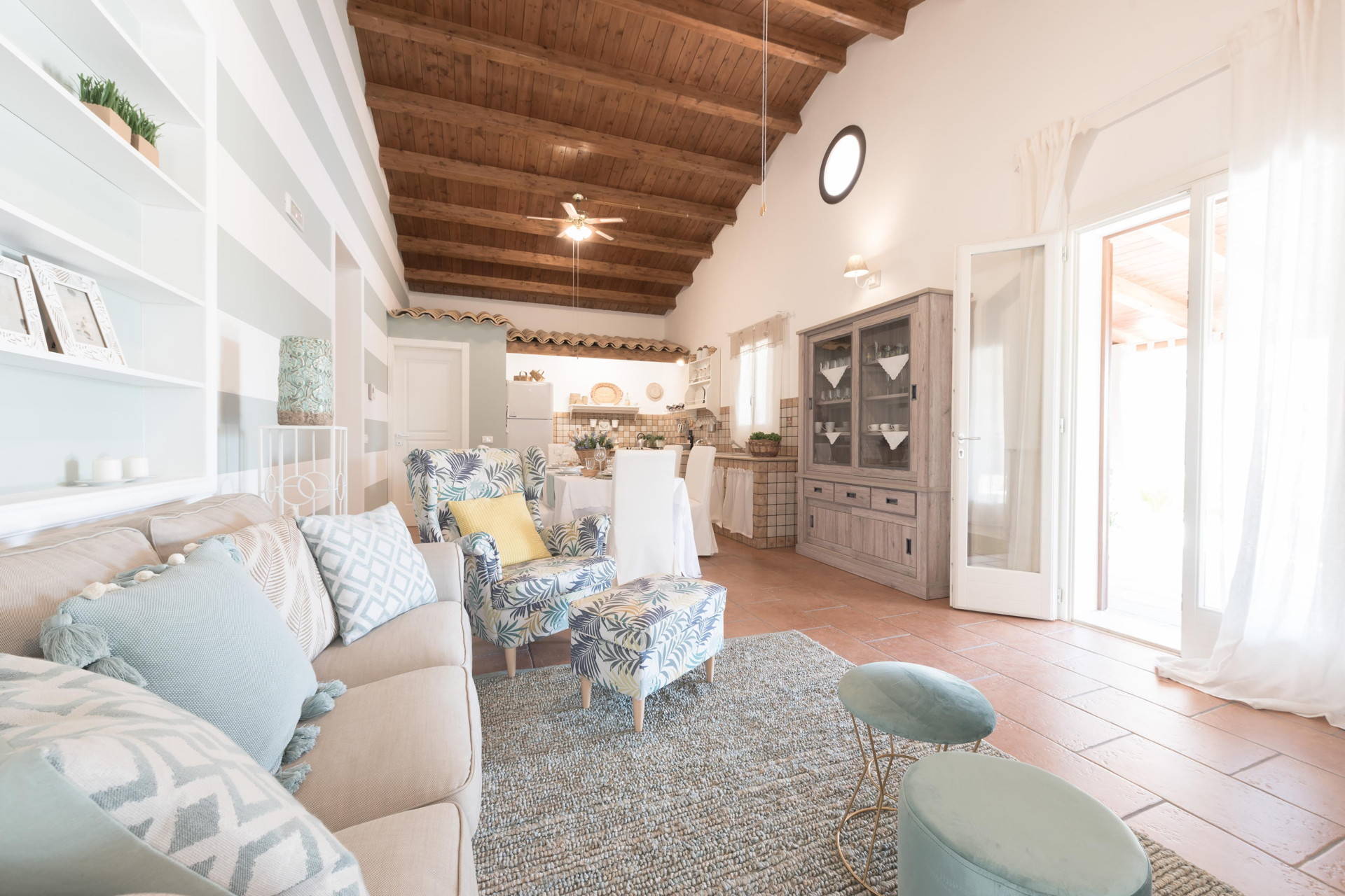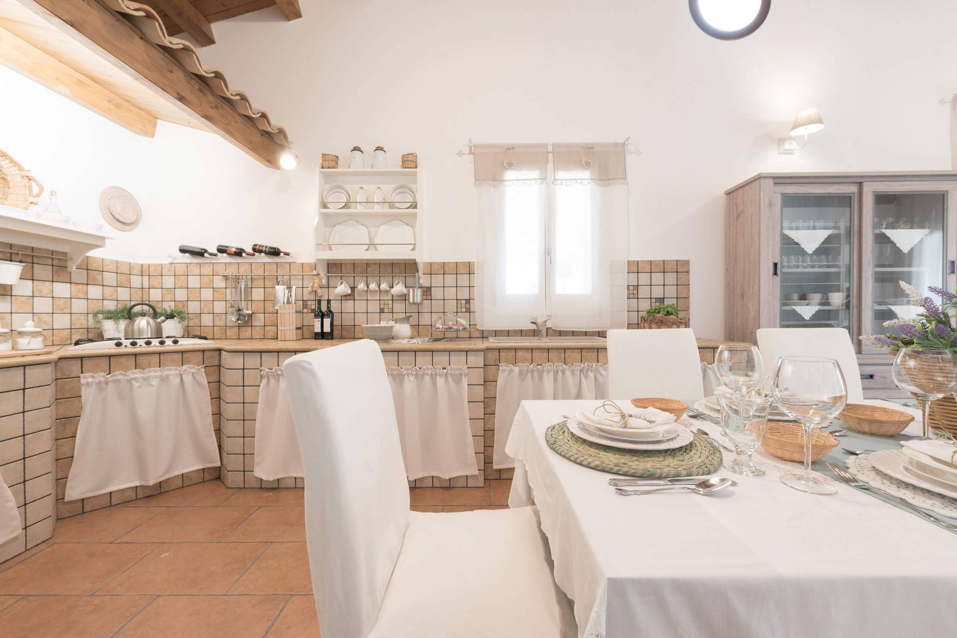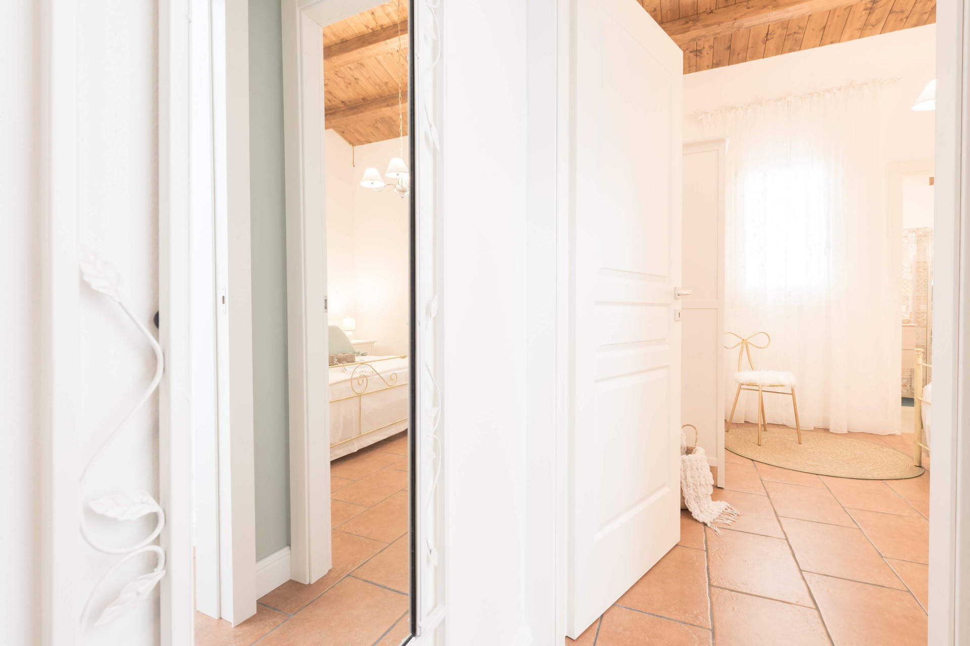 And the interior of the villa….what to say? Its furniture and style will hit you right away, elegant, refined, attention to the style shabby chic living area with a care and attention to detail that characterizes all the environments in the villa. Lights in the modern furniture, dark colors of white that make you decide with the grey room and enjoy every stay.