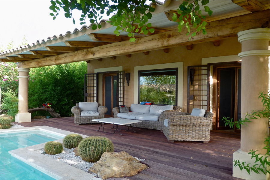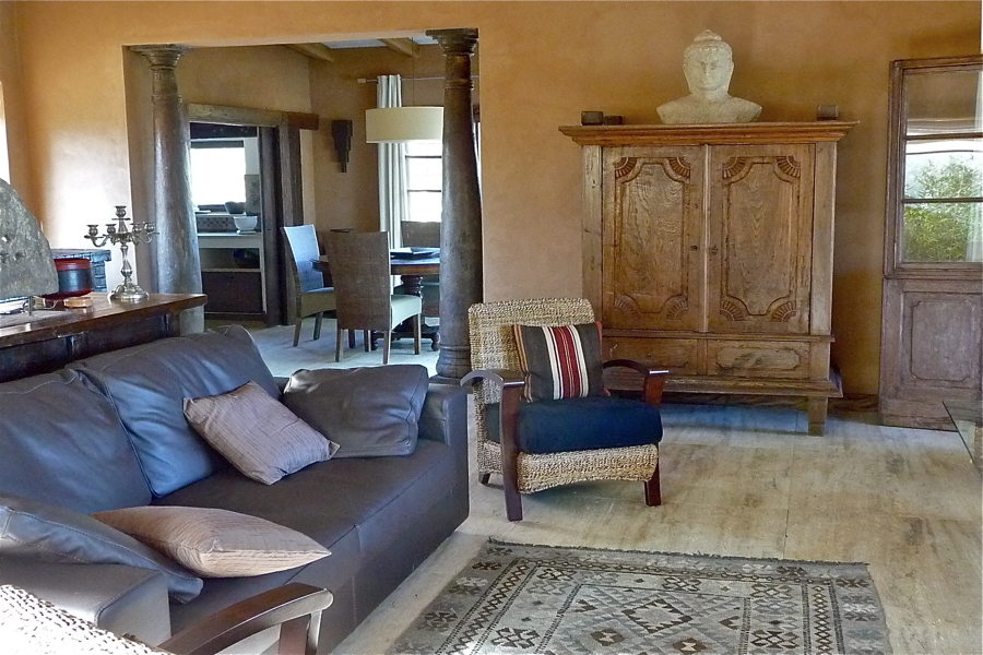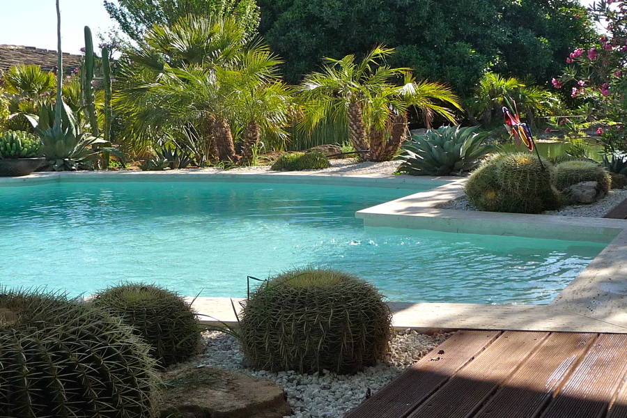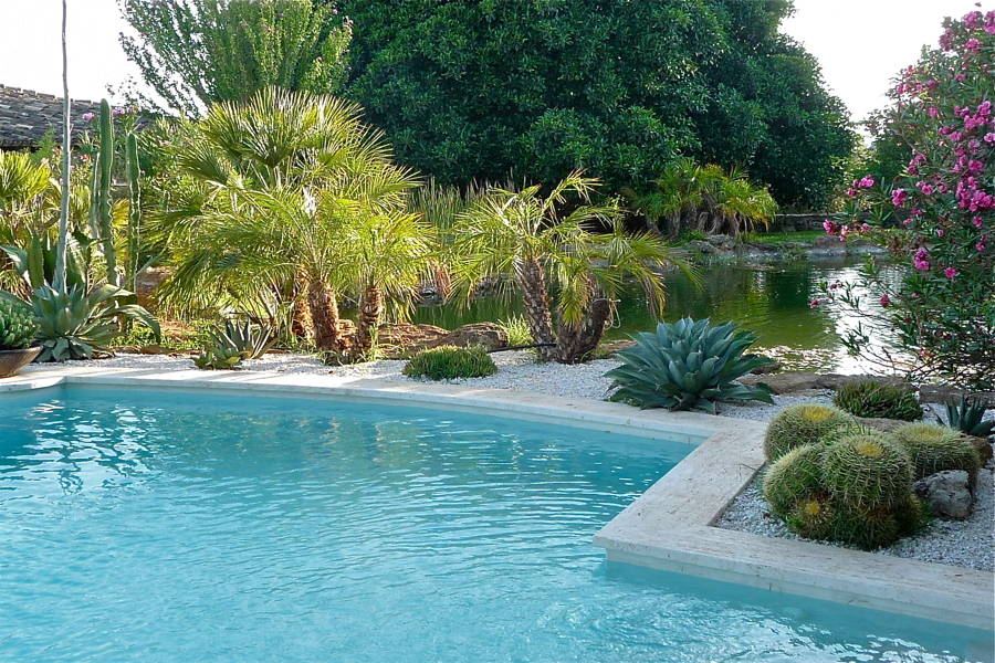 Its spacious and welcoming rooms are all on one level. The main house can accommodate up to 4 people, and in addition, there is a separate unit that can host another 2 people. A covered terrace, tastefully furnished, overlooks the swimming pool. The pool itself borders a picturesque pond adorned with papyrus and bamboo plants.