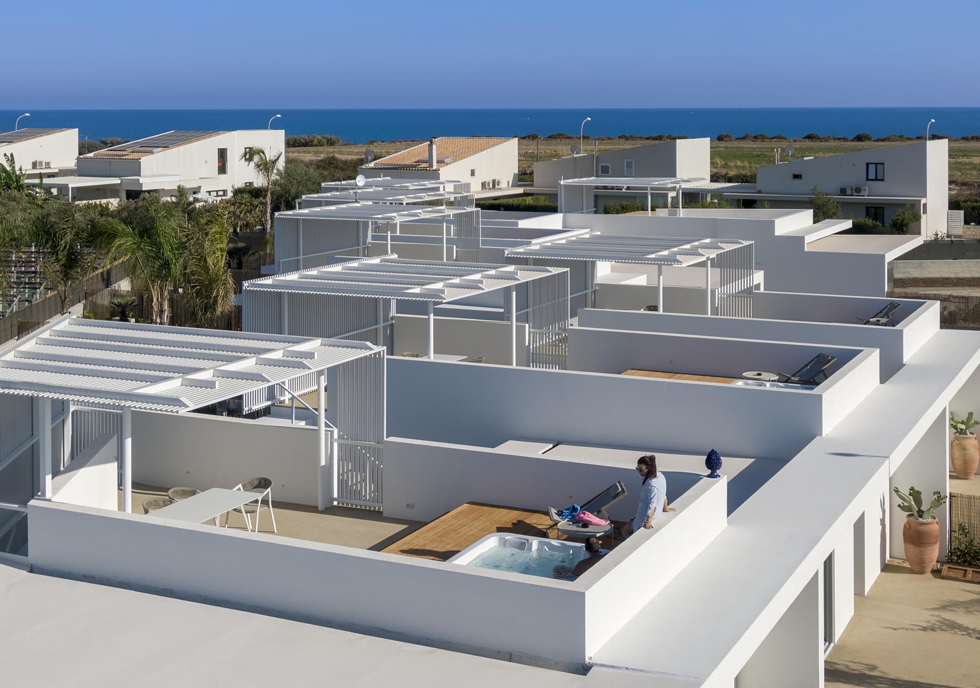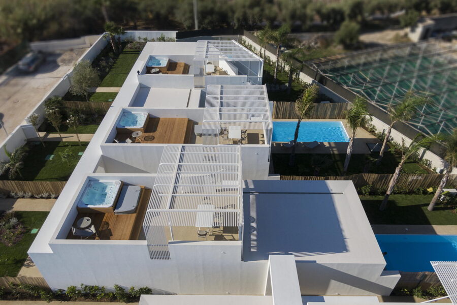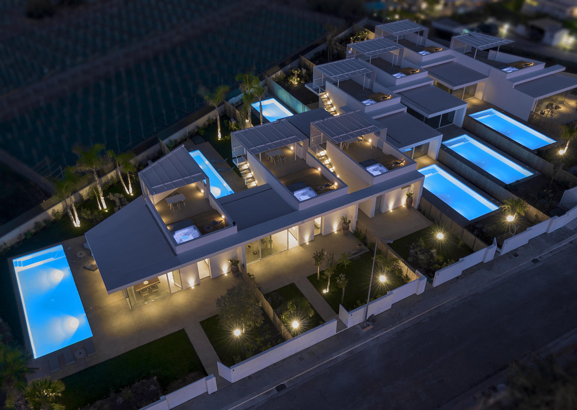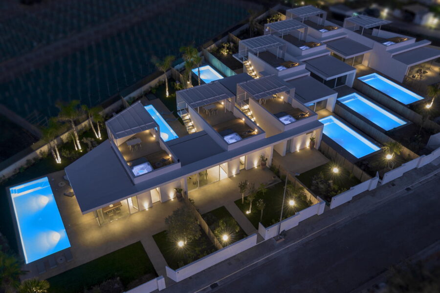 Please note that Villa Mennula presents a selection of seven townhouse-style homes, each with a private pool and rooftop jacuzzi, providing an exclusive experience with complete privacy. Although all residences have style and sophistication, you may observe variations in interior details, such as decor or furniture pieces. However, rest assured that any differences from the villa displayed on our website are minimal. The elegance, spaciousness, and quality are exceptional in all our offerings.