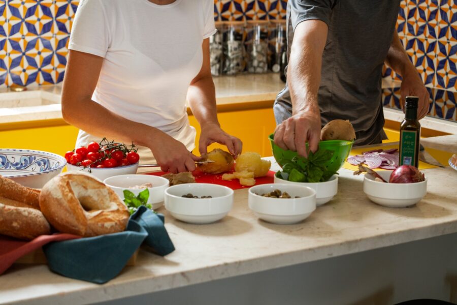 If the entire villa is booked, guests can also access the common kitchen, which the staff can use to prepare breakfasts and aperitifs.