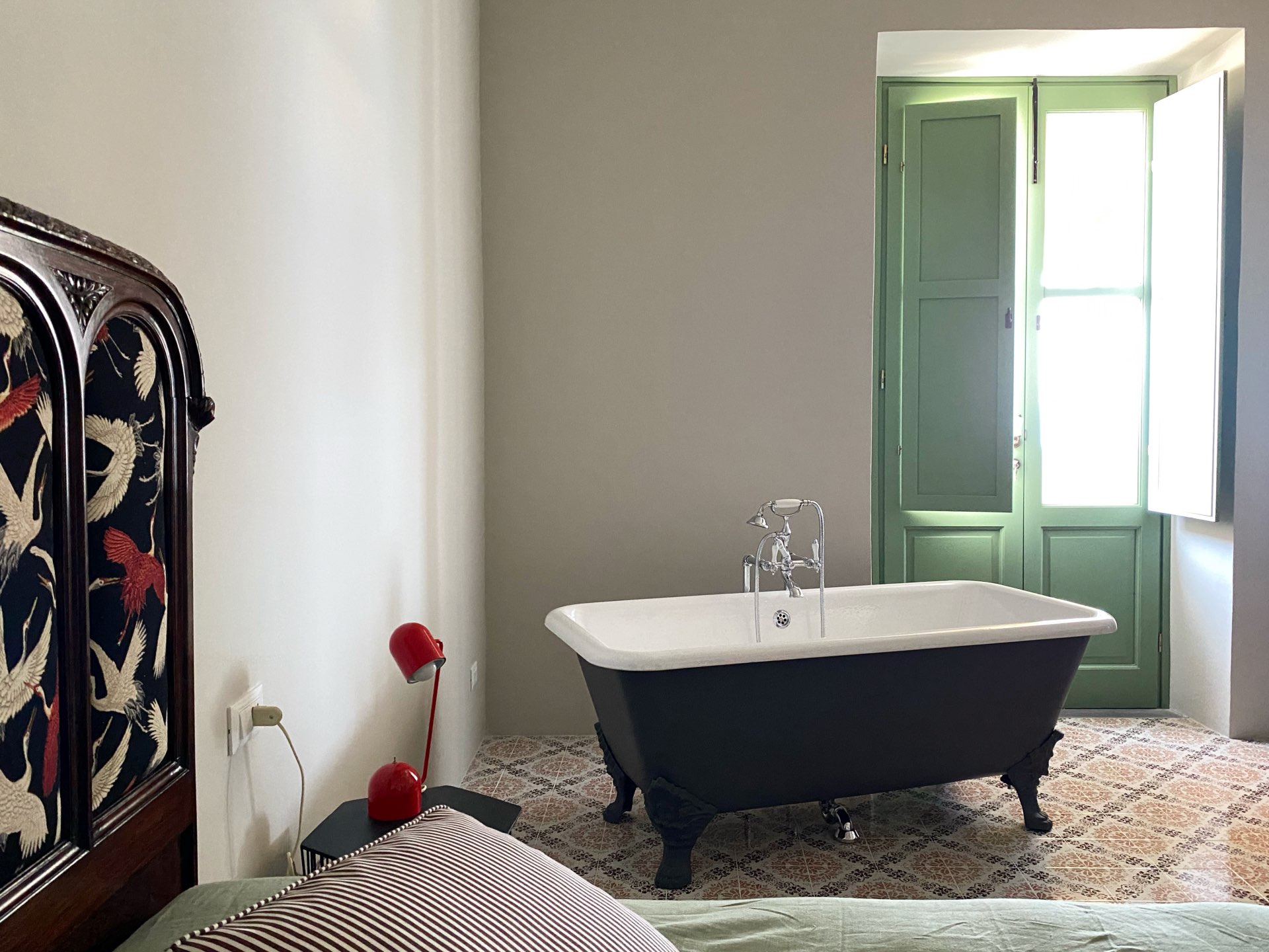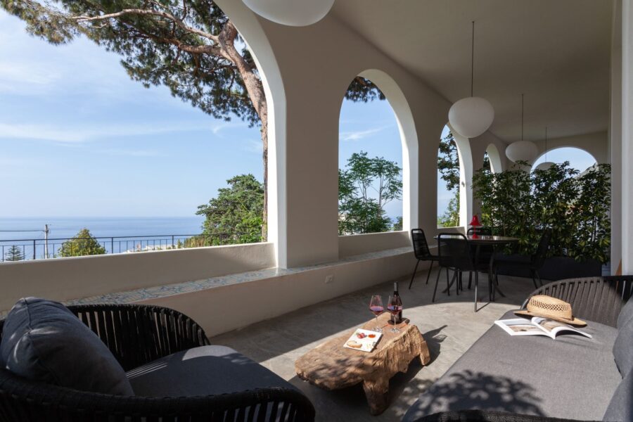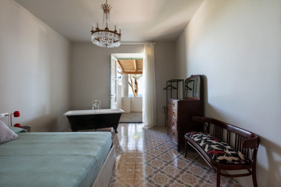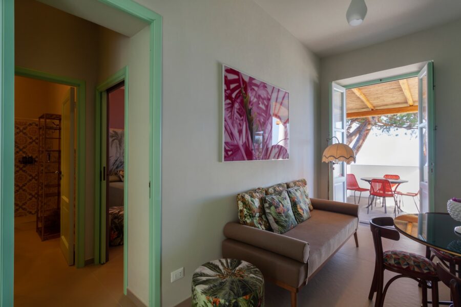 - Aria Suite: Upstairs, with pink and green shades, it features a sophisticated tub in the main bedroom and direct access to a wide terrace for sunbathing or sea-view aperitivos.