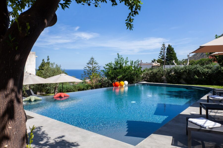 Experience stunning sea views, luxurious elegance, and an exquisite infinity pool, all designed for ultimate relaxation on the enchanting Salina island (a UNESCO site).