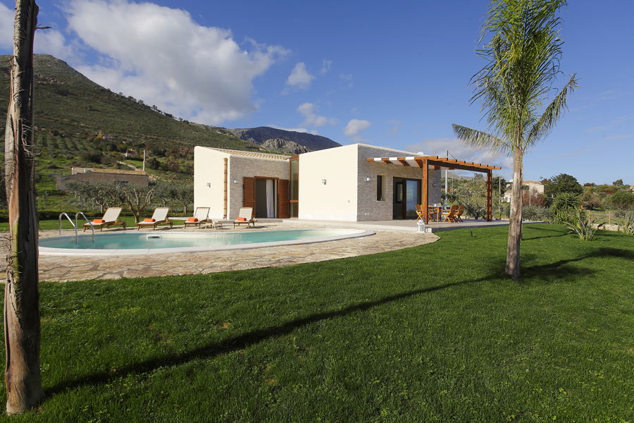 Surrounded by a lush, lawned Mediterranean garden and large expanses of young olive trees, the villa is ideal for anyone seeking a peaceful, relaxing location, either as a couple or a family of 3-4 people. It is close to Scopello, with its enticing sea and iconic rock formations, and the popular beach at Guidaloca.