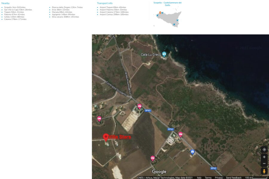 Villa Stars is a charming property with private pool, set in the countryside around Scopello. The villa enjoys a superb location with panoramic views over the Bay of Castellammare in western Sicily.