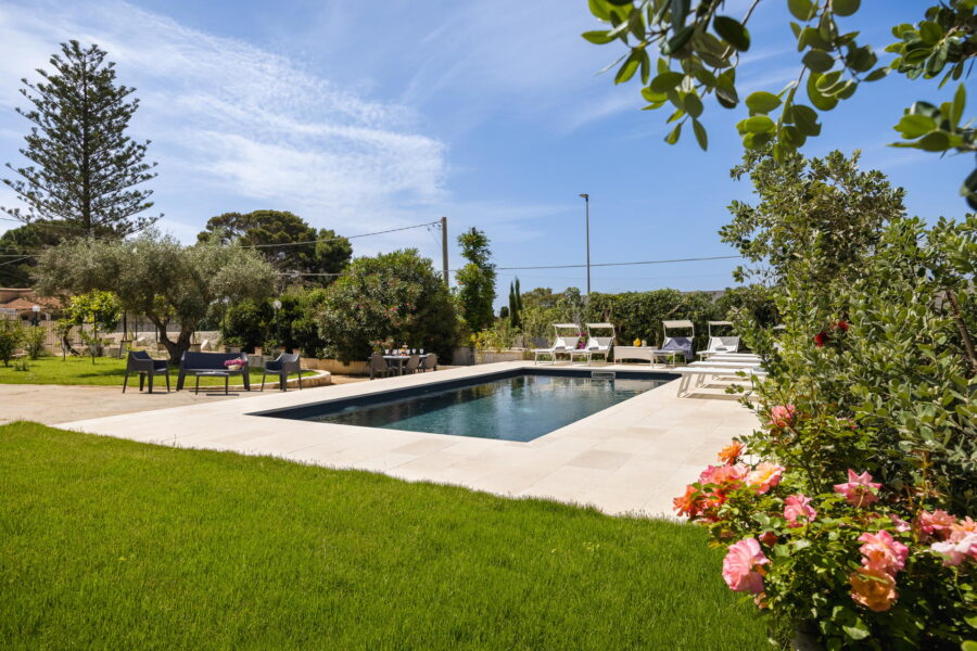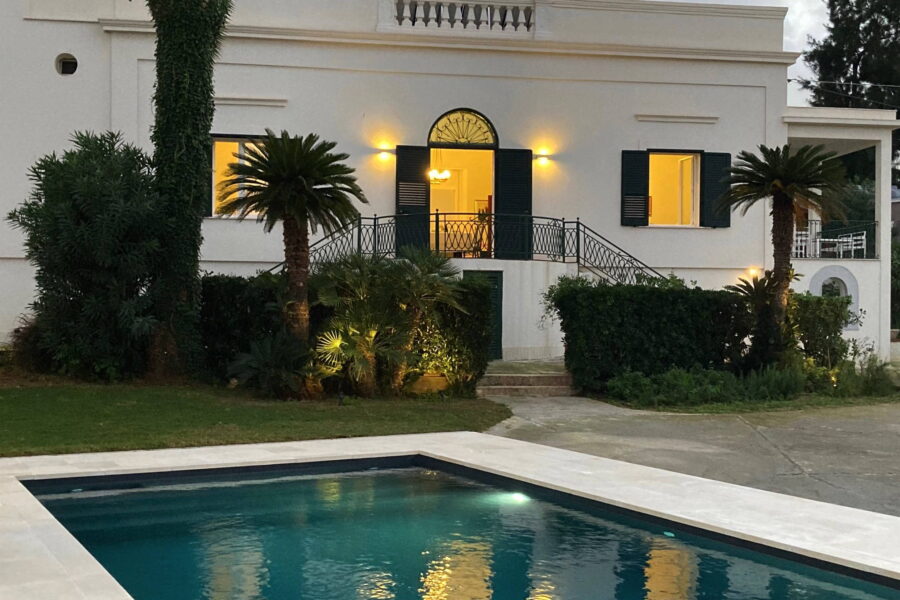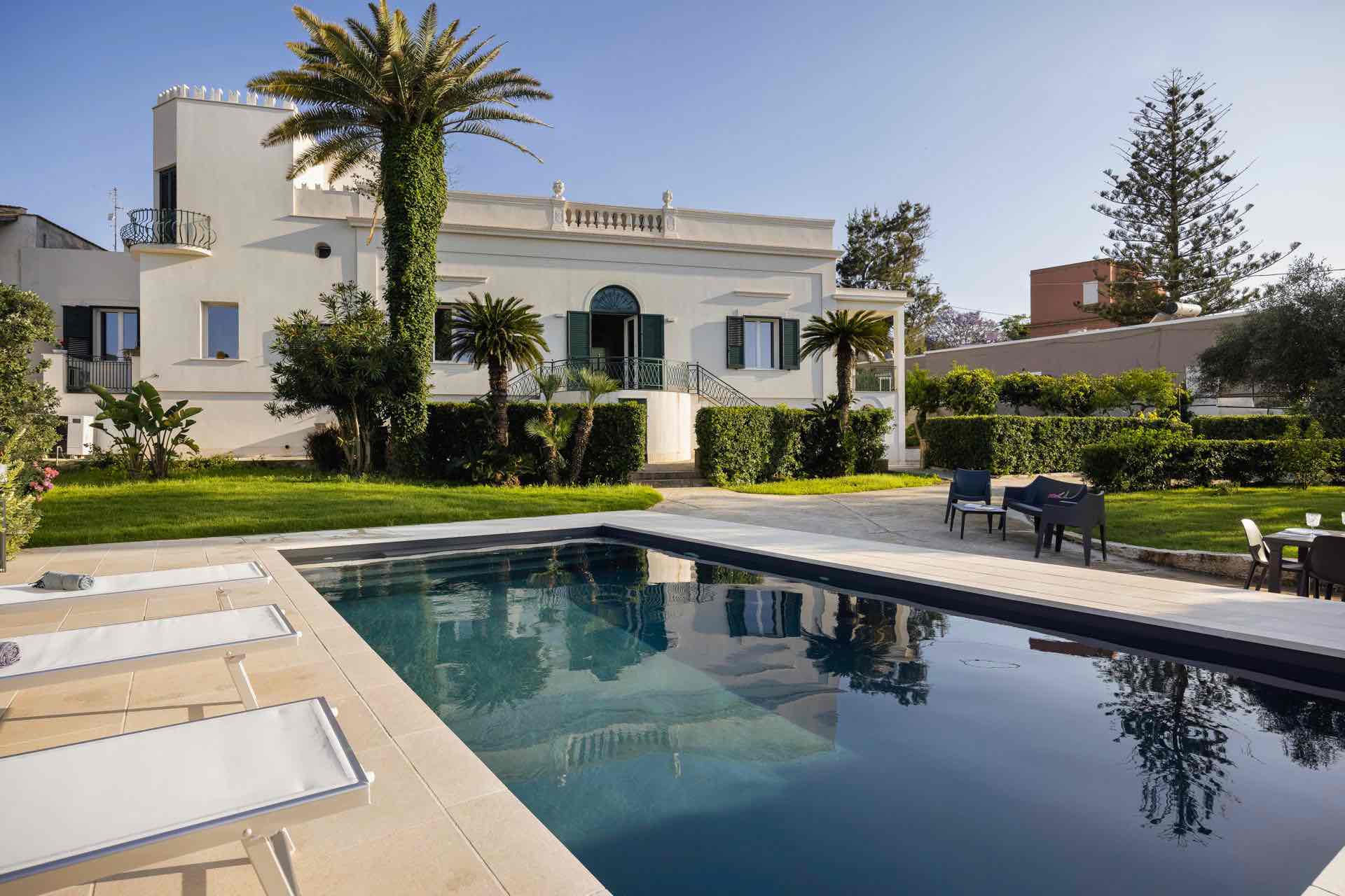 A splendid villa from the early twentieth century that has been elegantly renovated, with a delightful garden that includes an elegant swimming pool and views of the Sicilian countryside sloping down towards the sea and Mount Erice.