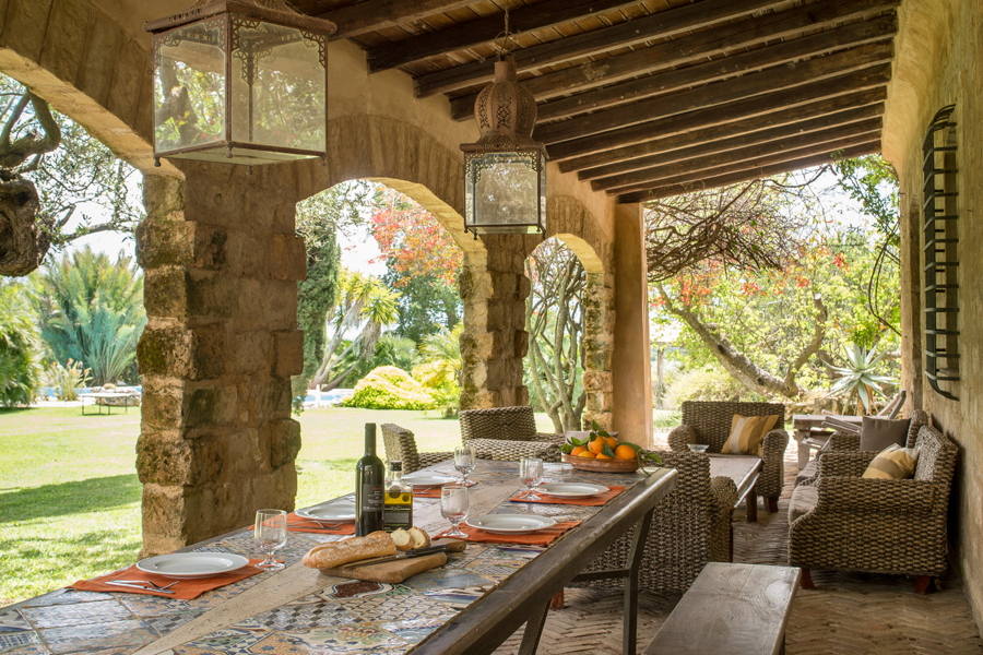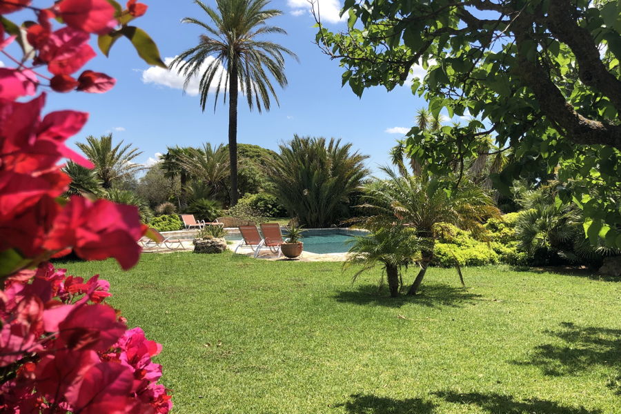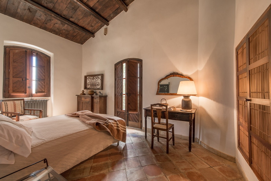 The tiled floors, inner stonewalls & archways, and the beamed ceilings bring a real character to this delightful property. It is set in large grounds, laid to lawn, with citrus, olive, palm and cypress trees, there is a large swimming pool, open and covered terraces, a built-in barbecue for outdoor dining and a little pond with papyrus plants and bamboo plants.