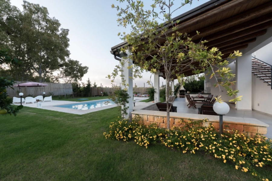 This splendid, stylish villa is located in a lovely spot just 1.5km from the golden sands and blue sea of Santa Maria del Focallo beach.