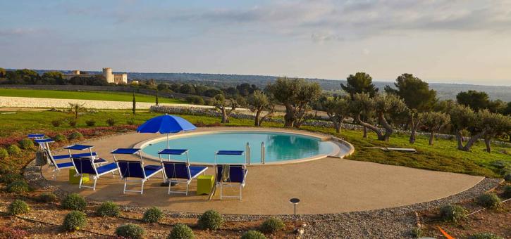 A stylish east-facing villa with circular swimming pool in the Sicilian countryside